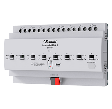 Actionneur industriel avec 8 sorties (20 A – 200 µF), contrôle manuel mécanique et KNX Secure